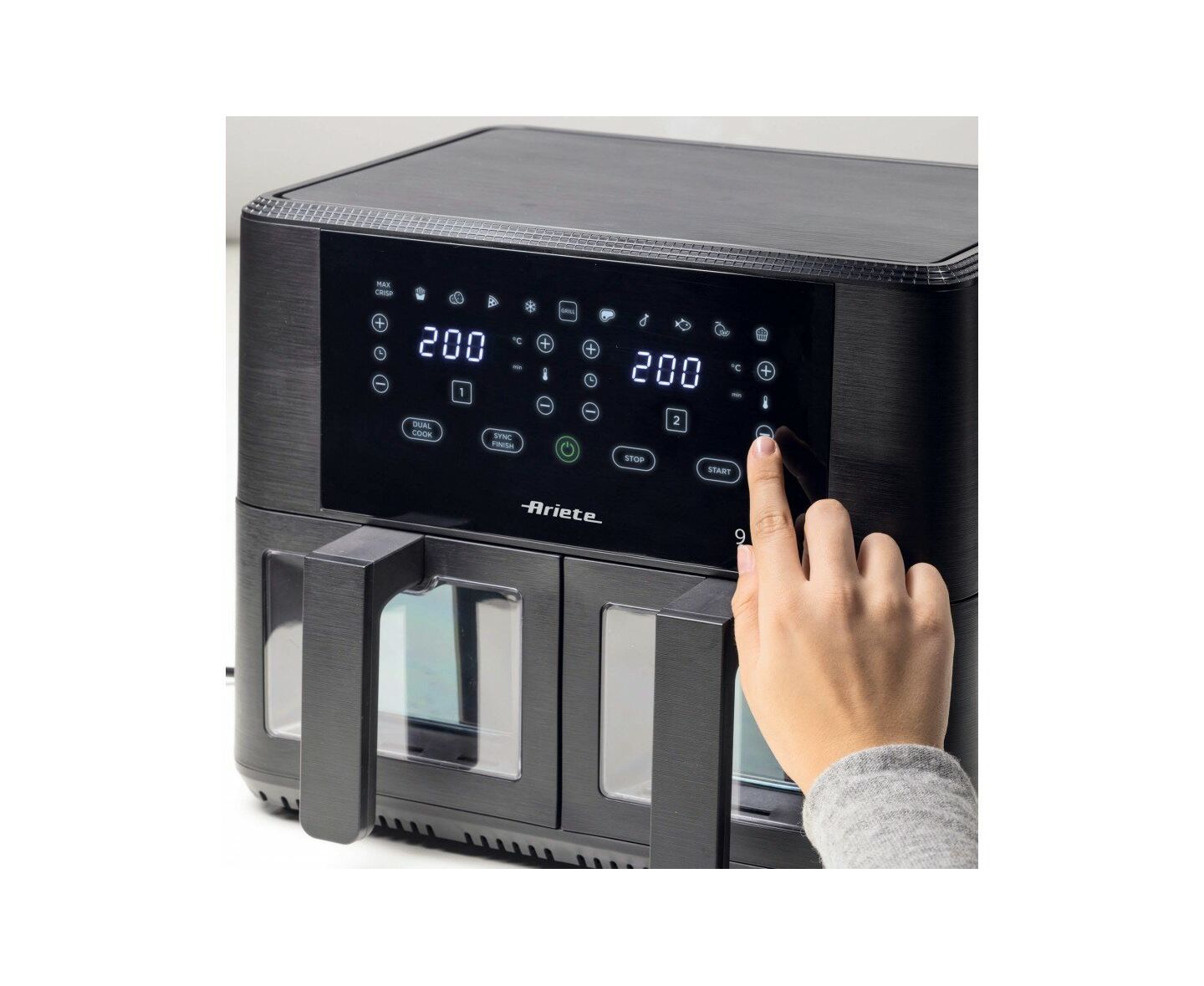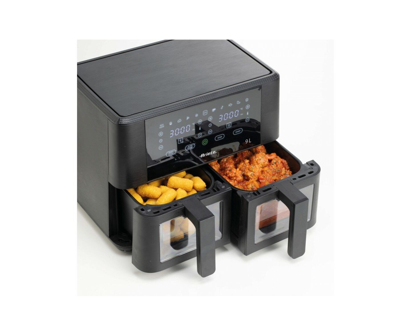 2 независимых корзины, 11 автоматических программ (включая приготовление мяса и рыбы, десертов, пиццы, а также гриль, разморозка и сушка продуктов)