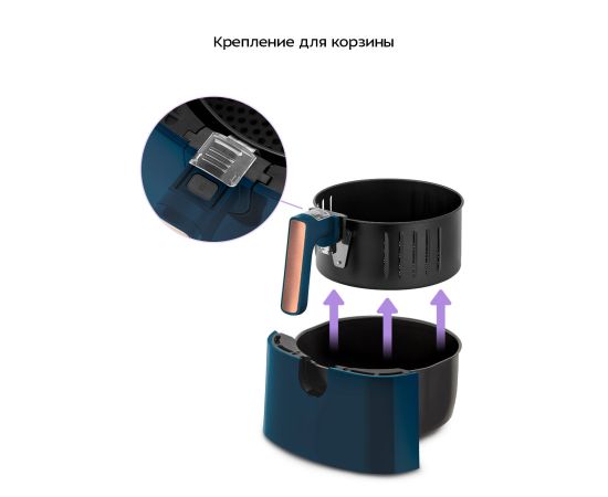 Корзина поддона КТ-8106 дополнительно оборудована специальным креплением, которое позволяет с лёгкостью отсоединить её от основного поддона. Это не только облегчит процесс перекладывания еды в посуду, но и процесс очистки элементов аэрогриля.