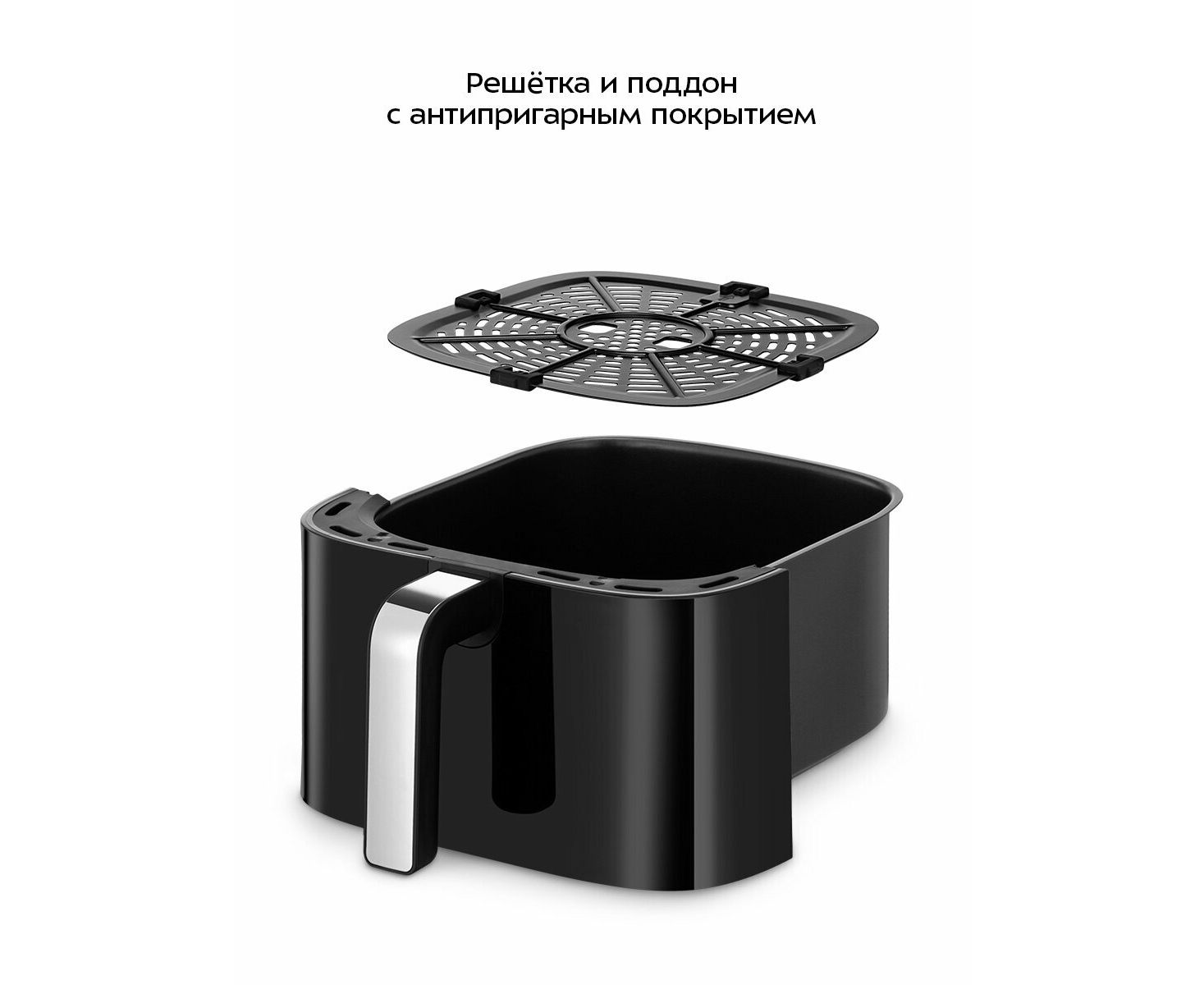 Продукты готовятся на специальной решётке, устанавливаемой в поддон. И на решётку, и на поддон нанесено антипригарное покрытие, поэтому ничего не пригорит! Поддон и решётку легко снять и помыть.