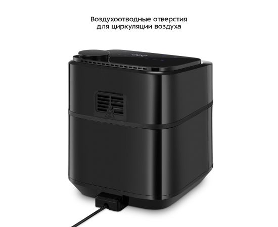 Вентилятор, который работает во время приготовления, создаёт циркуляцию горячего воздуха. За счёт этого продукты готовятся равномерно со всех сторон, а сам процесс приготовления не требует постоянного контроля.