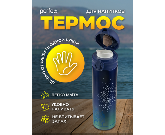 Термос для напитков PERFEO с крышкой-поилкой, ситечком, объем 0,5 л., звездное небо, (Арт. PF_C3714)