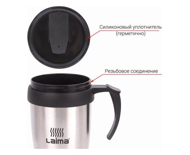 Крышка имеет специальный клапан, позволяющий пить "на ходу", не проливая жидкости, а также предохраняющий быстрое нагревание холодных или охлаждение горячих напитков. Для быстрого и комфортного наполнения емкости жидкостью или кубиками льда предусмотрено широкое горлышко, которое закрывается винтовой крышкой.
