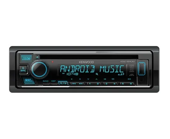 Автопроигрыватель KENWOOD KDC-154UM обладает многоцветной подсветкой, которая делает кнопки заметнее при слабом внешнем освещении. Сегментный дисплей транслирует необходимые пользователю данные в виде бегущих строк. Разъемы AUX, CD, USB помогают в подключении внешних устройств с сохраненными треками.