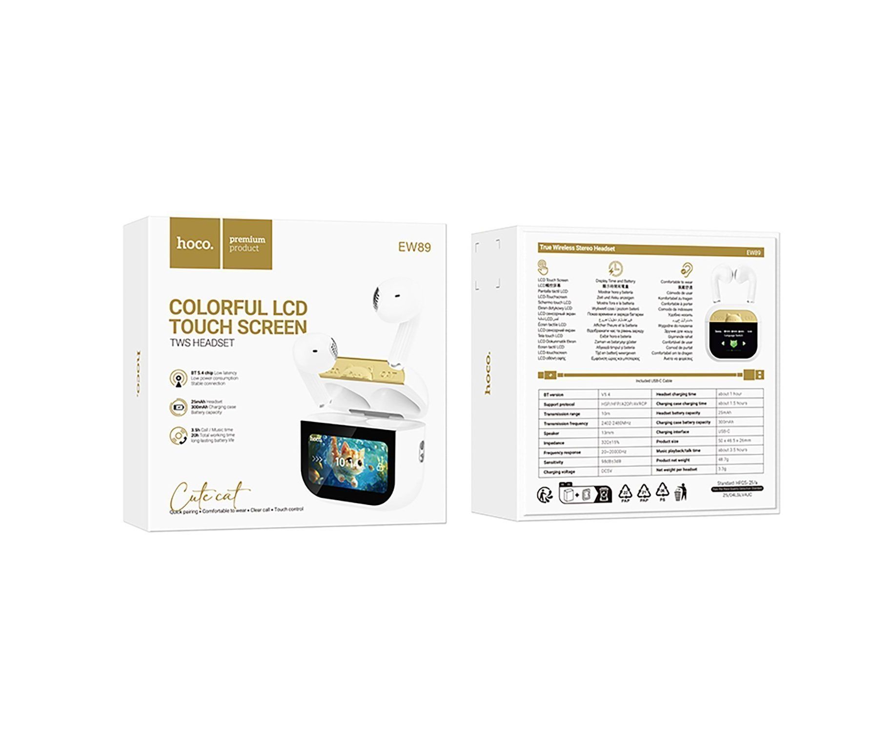 Беспроводные Bluetooth-наушники Hoco TWS EW89 с сенсорным экраном (white) (243055)