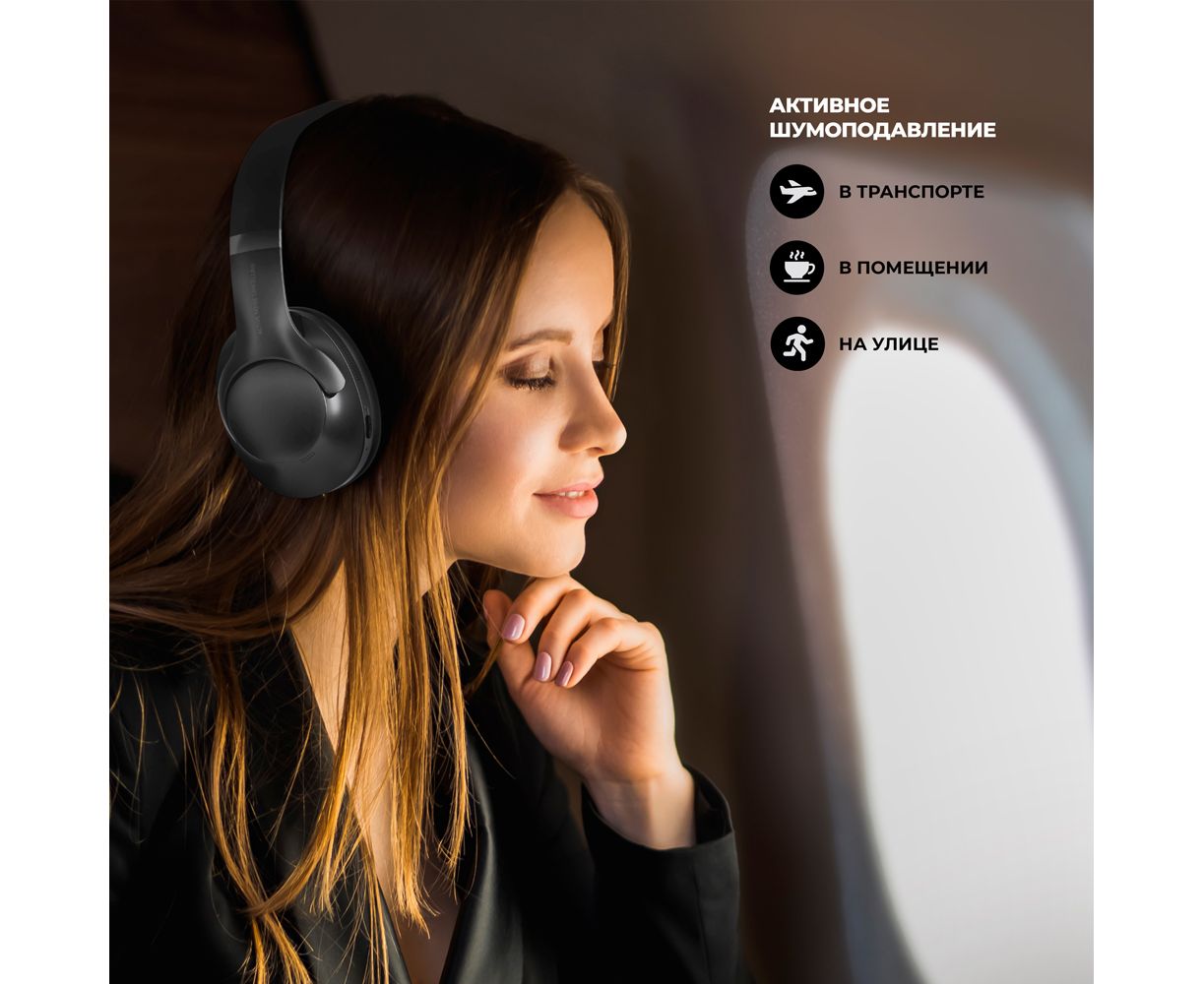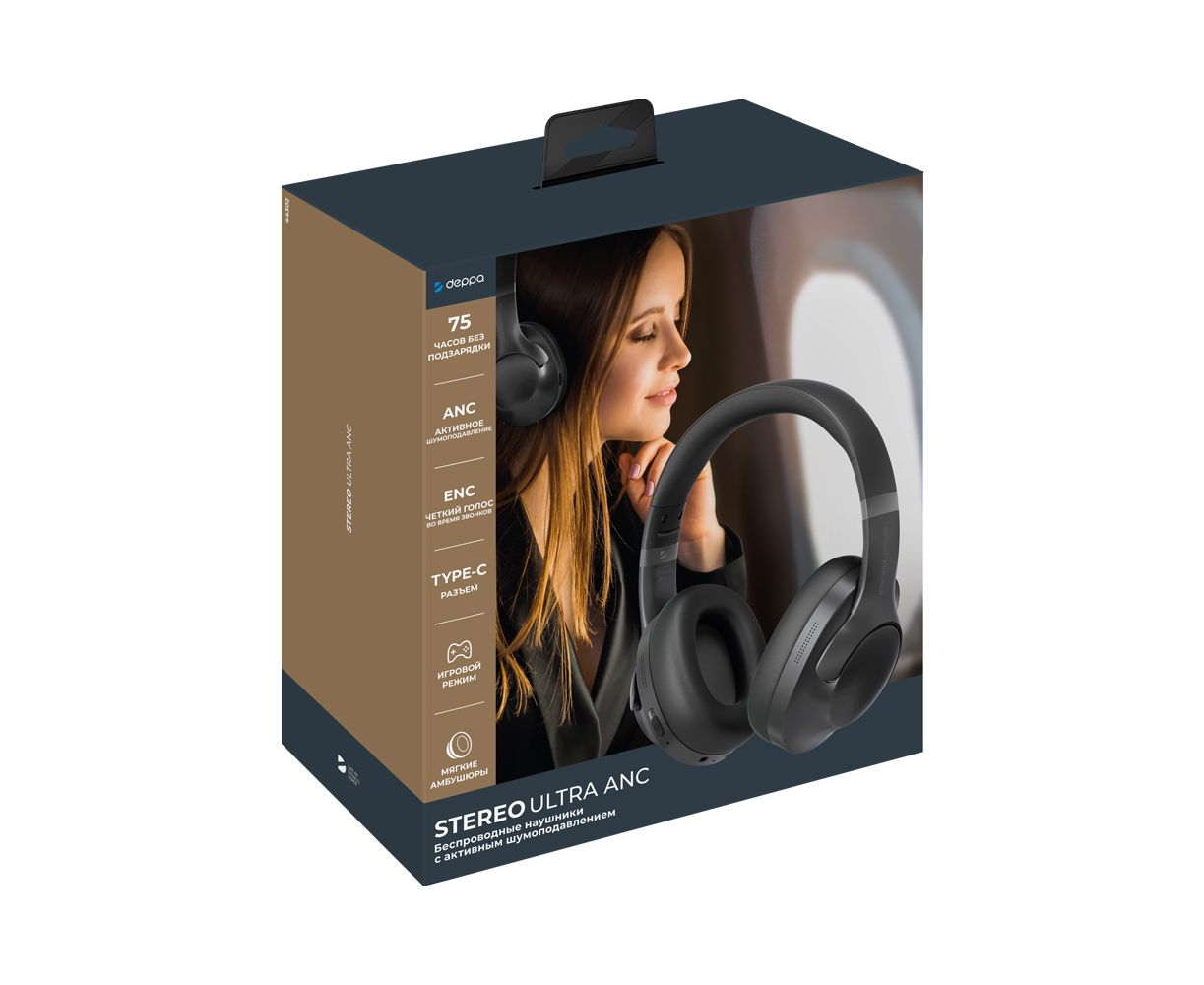 Беспроводные накладные наушники Stereo Ultra ANC, BT 5.4, ANC/ENC, 500мАч, черный, Deppa