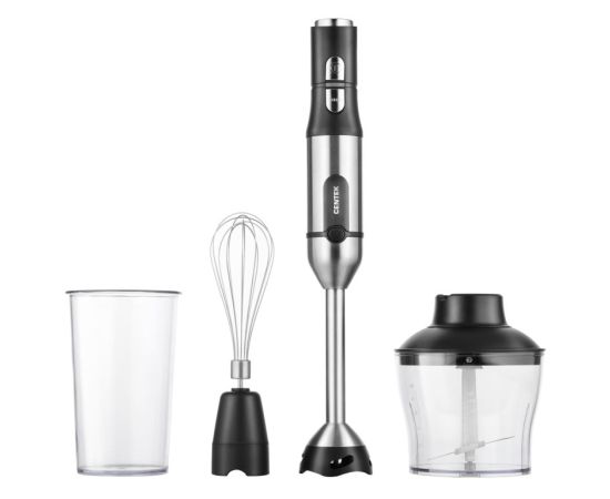 Имеет 15 скоростей и турбо-режим. Оснащен также насадкой блендером погружным который без труда смешивает и взбивает коктейли, соусы, майонезы, смузи и многое другое. Лезвия ножей погружного блендера имеют титановое покрытие, эксклюзивную форму ножей для достижения превосходных результатов приготовления. Вы никогда не видели более быстрых результатов при взбивании сливок, сбивании яиц, перемешивании теста для пирогов или замешивания голландского соуса, а также во время мгновенного приготовления домашних десертов со всем эти справиться венчик который входит в комплект блендера Centek.
