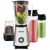 Особенности: У бутылки имеется флип-крышка, которая предотвращает выливание напитка. 4-лезвийный нож из высококачественной стали отлично смешает различные ингредиенты на 2 скоростных режимах, а также с помощью импульсного режима он измельчит особенно твёрдые продукты. Ёмкость чаши/бутылки 1л/0,6л/0,4л/0,05л