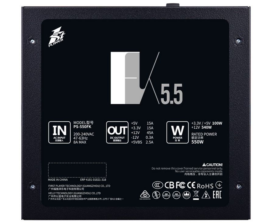 Блок питания 1STPLAYER FK 550W ATX 2.4, APFC, 120mm fan PS-550FK