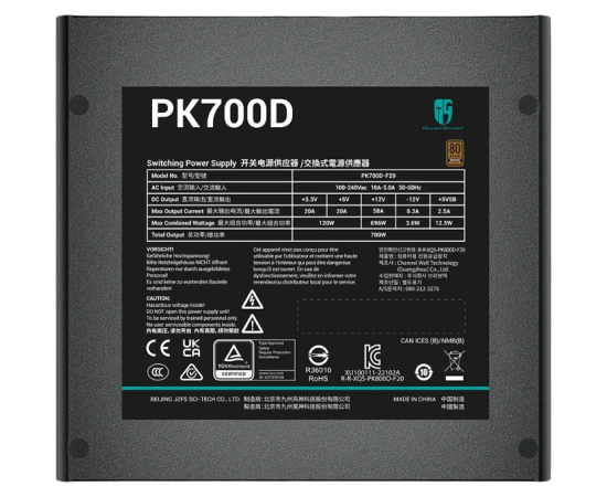 Блок питания Deepcool Gamerstorm PK700D (ATX 2.4, 700W, PWM 120mm fan, Active PFC+DC to DC, 80+ Bronze) Ret