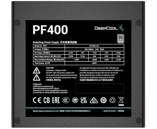 Блок питания Deepcool PF400 80+ ATX 2.4 400W, PWM 120mm fan, 80 Plus, Active PFC RET