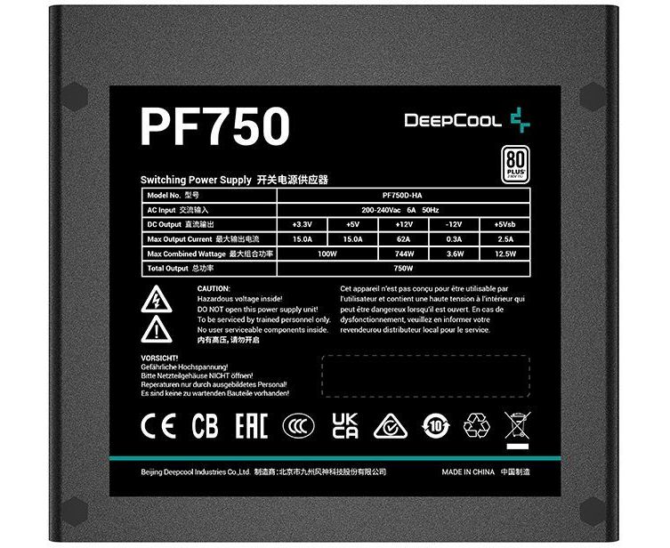 Блок питания Deepcool PF750 80+ (ATX 2.4 750W, PWM 120mm fan, 80 Plus, Active PFC) RET