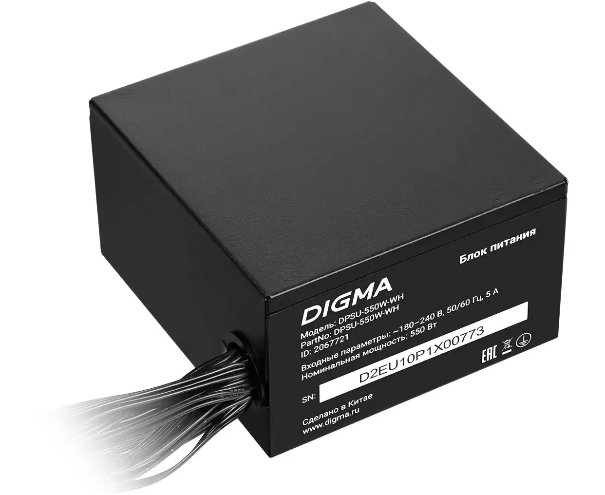 Блок питания Digma DPSU-550W-WH 80 Plus White ATX 550W (20+4pin) APFC 120mm fan 6xSATA RTL