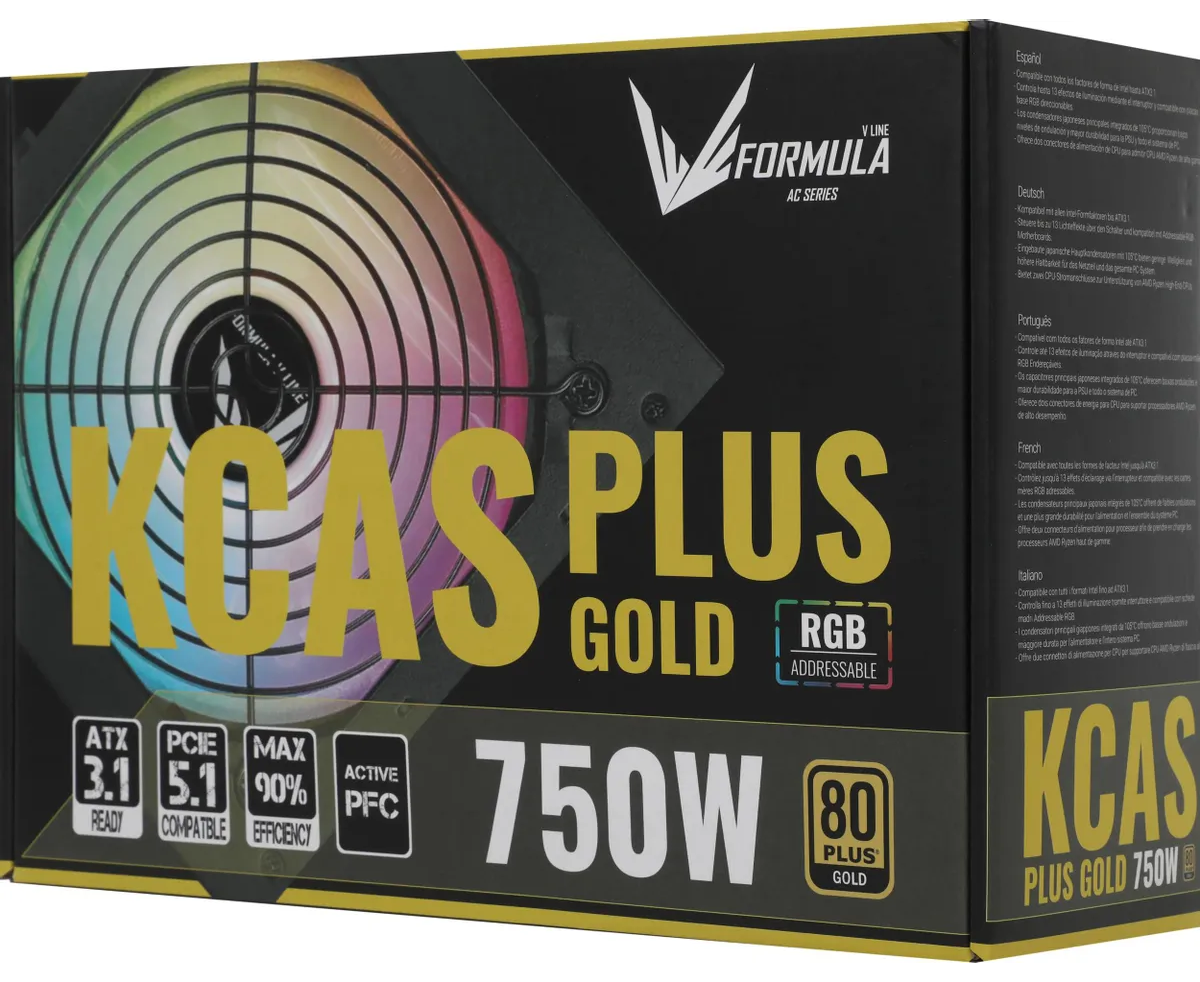 Блок питания Formula AC KCAS Plus Gold ATX 750W RGB (KCAS Plus 750G) 80+ gold (20+4pin) APFC 120mm fan color LED 8xSATA RTL
