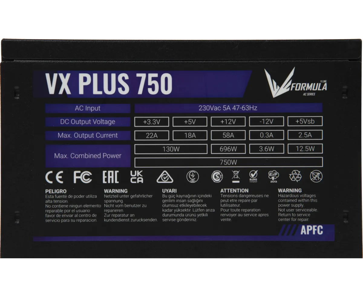Блок питания Formula AC VX Plus (VX Plus 750W) ATX 750W (20+4pin) APFC 120mm fan 4xSATA RTL