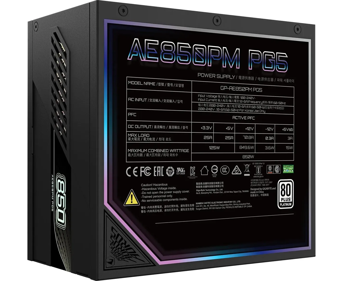 Блок питания GIGABYTE Aorus Elite GP-AE850PM PG5, Gen.5, 850Вт, 120мм, retail