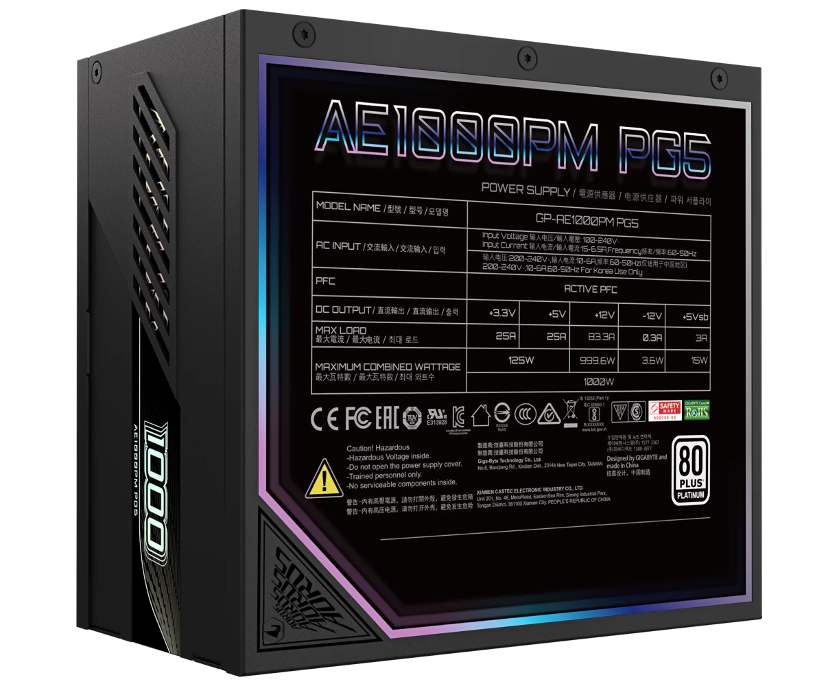 Блок питания GIGABYTE GP-AE1000PM PG5, Gen.5, 1000Вт, 120мм, черный, retail
