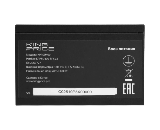 Блок питания KingPrice KPPSU400 (KPPSU400-SFXV3) (20+4pin) PPFC 80mm fan 3xSATA SFX 400W