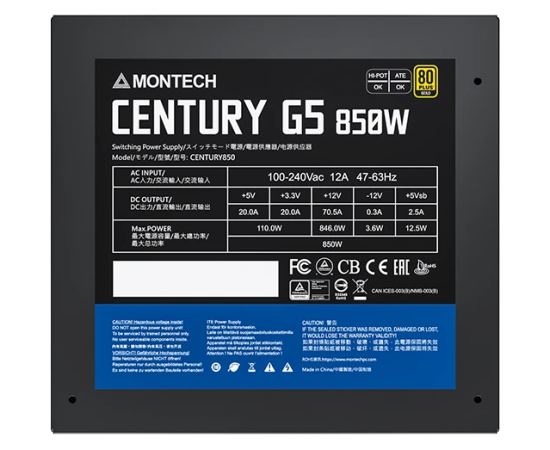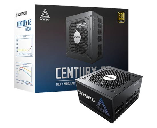 Блок питания Montech Century G5 850W / ATX 3.0, APFC, 80 Plus Gold, Full Bridge LLC, DC-DC, Japan caps, 120mm fan, full modular
