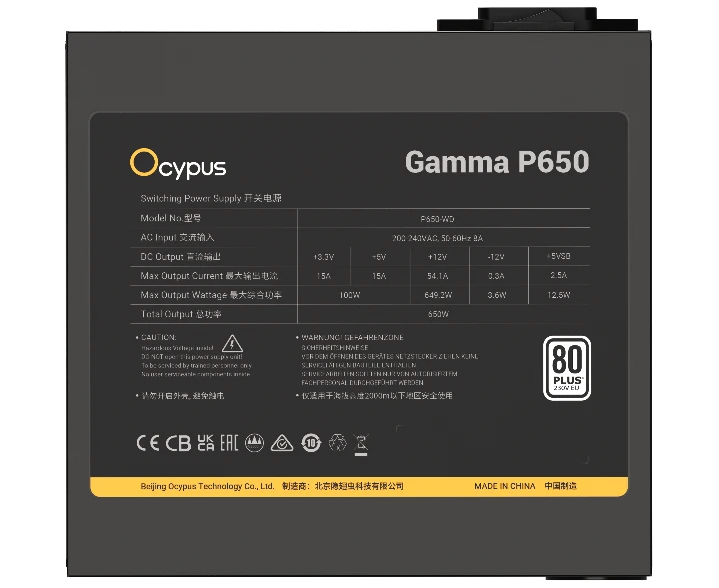 Блок питания Ocypus Gamma P650 [P650-WD] 650W (Gamma-P650-W1HDBK024X-EU)