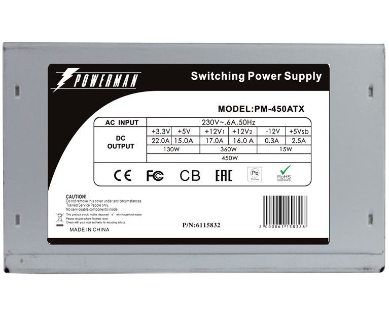 Блок питания POWERMAN PM-450ATX 6115832 for P4 450W OEM