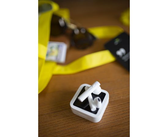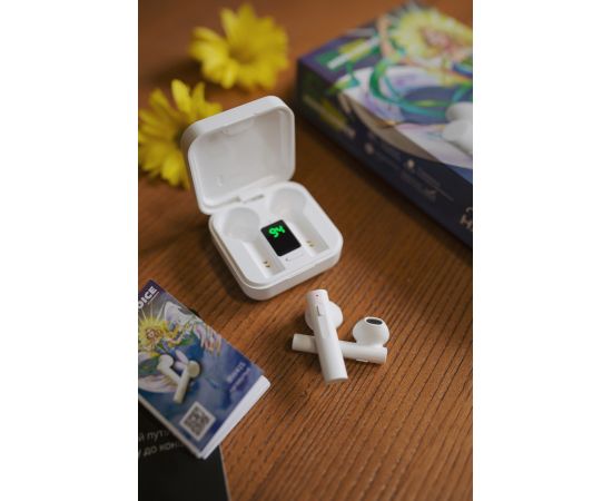 40 мАч (один наушник) LED индикатор состояния: есть Водонепроницаемость - IPx4. Солнечная батарея для зарядки. Комплектация: наушники, кейс для хранения и зарядки, инструкция, зарядный кабель, коллекционная карточка, игральные кубики, буклет. Цвета: White