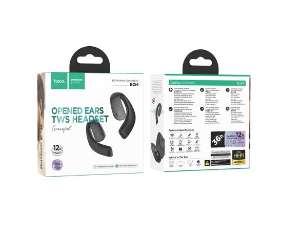 Hoco EQ4 - это новое дополнение к линейке спортивных наушников компании, предназначенных для активного образа жизни. Эти наушники обладают рядом расширенных функций и технических характеристик, которые делают их идеальными для любителей спорта. Наушники имеют уникальный дизайн ушного крючка, который обеспечивает надежную и удобную посадку. Встроенный микрофон позволяет принимать звонки по громкой связи. Оснащены аккумулятором емкостью 500 мАч, который обеспечивает до 12 часов использования на одной зарядке. Технология Bluetooth 5.3 обеспечивает стабильное и надежное соединение. Hoco EQ4 обладает качеством стереозвука, которое обеспечивает чистый и насыщенный звук.