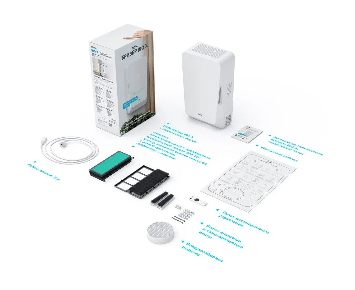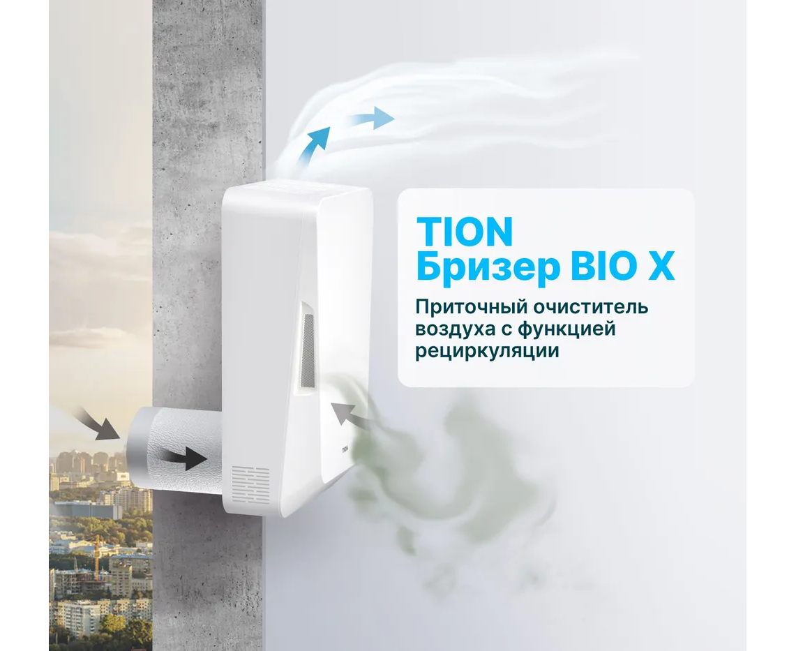 TION БРИЗЕР BIO-X – приточный очиститель воздуха с компактными габаритами и высокой степенью очистки воздуха для безопасного проветривания.