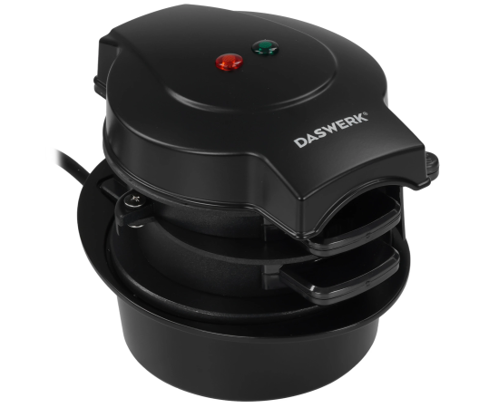 Сэндвичница DASWERK BM-1 оснащен съемными пластинами с антипригарным покрытием. В корпусе есть яркий индикатор включения. Устройство дополнено защитой от перегрева.