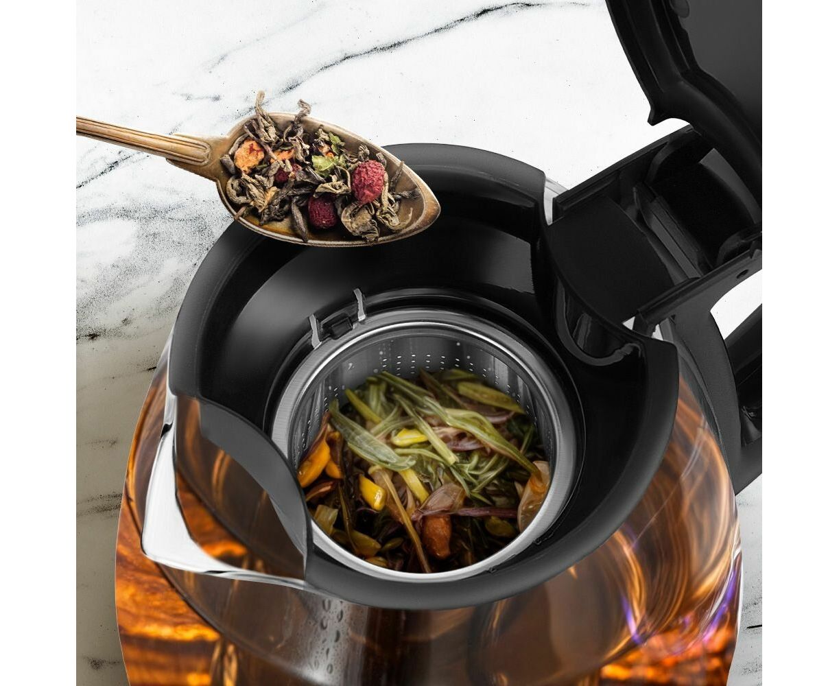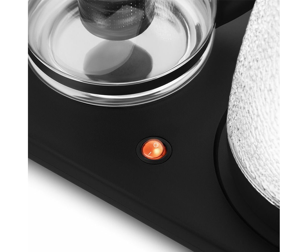 Заварочный чайник изготовлен из термостойкого стекла и имеет съёмный фильтр из нержавеющей стали для чая или кофе. В месте установки заварочного чайника на базу находится платформа с подогревом, благодаря которой можно сохранять готовый напиток тёплым.