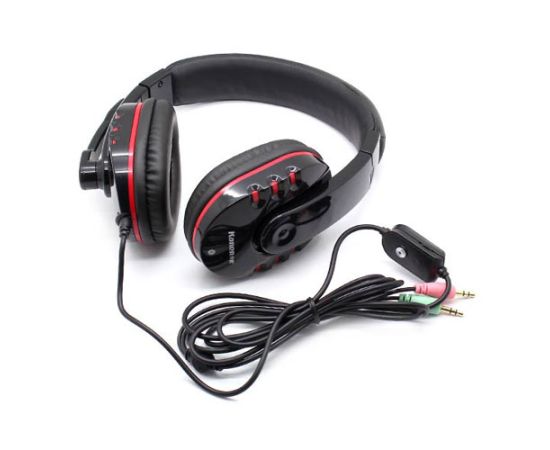 Полированный корпус из пластика черного цвета. Оголовье - регулируемое. Отделка амбушюров выполнена из синтетической кожи с поролоновым наполнителем. Большие 40 мм динамики. Крепление шнура - одностороннее. Регулируемый по углу наклона микрофон. Регулятор громкости на шнуре.
