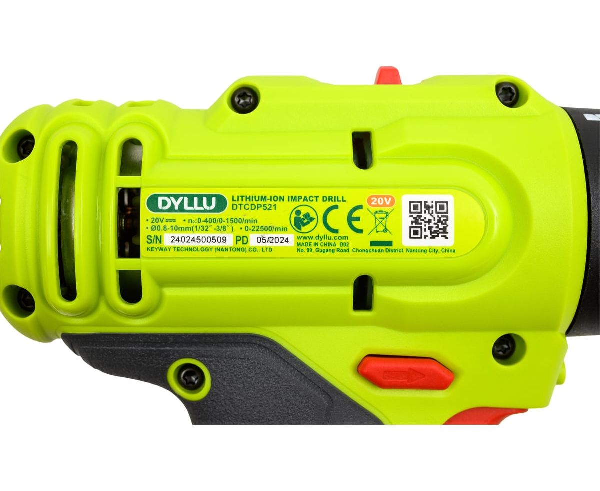 Аккумуляторная дрель-шуруповерт DYLLU DTCDP521 также работает от напряжения 20В и имеет аналогичные характеристики: скорость холостого хода 0–400–0–1500 об/мин, максимальный крутящий момент 35Нм и пластиковый патрон с диапазоном зажима 0.8–10 мм. Регулировка крутящего момента (15+1) и двухскоростной режим работы обеспечивают гибкость при выполнении различных задач. Встроенная светодиодная подсветка помогает работать в условиях плохого освещения. В комплект входит аккумулятор емкостью 1.5Ач и зарядное устройство. Встроенная светодиодная подсветка.