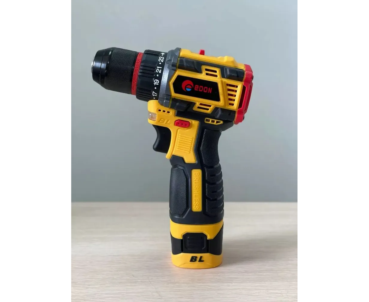 Дрель-шуруповерт аккумуляторная Edon AD-16BL бесщеточная - это мощный и удобный в использовании аккумуляторный инструмент, имеющий бесщеточный двигатель, который обеспечивает эффективность работы и длительный срок службы. Предназначена для сверления отверстий и закручивания или откручивания различного крепежа. Устройство оснащено литий-ионным аккумулятором с емкостью 2,0 А.ч., который обеспечивает длительное время работы без необходимости подзарядки. AD-16BL имеет две скорости вращения и реверсивную функцию, что позволяет быстро и легко менять режимы работы в зависимости от задач.