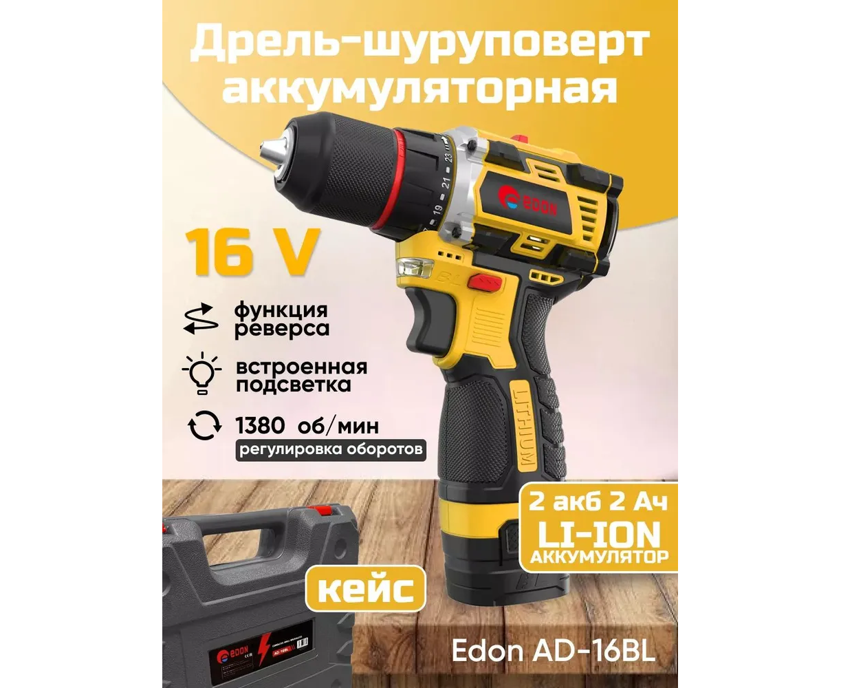 Дрель-шуруповерт EDON AD-16BL черный/желтый 24891