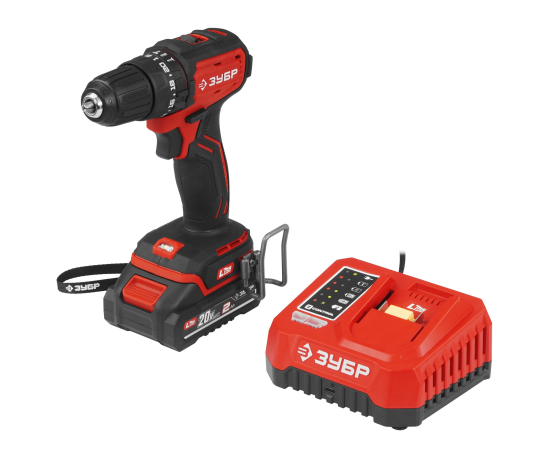 ЗУБР 20 В, 45 Н·м, 1 АКБ LMS (2 А·ч), бесщеточная ударная дрель-шуруповерт ДБУ-45-21 - инструмент из единой аккумуляторной системы LMS для 500+ инструментов.