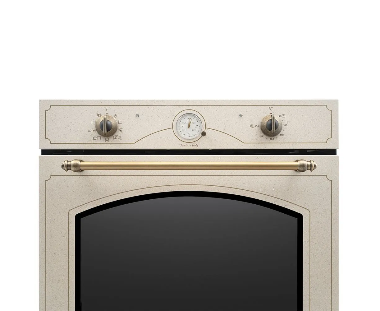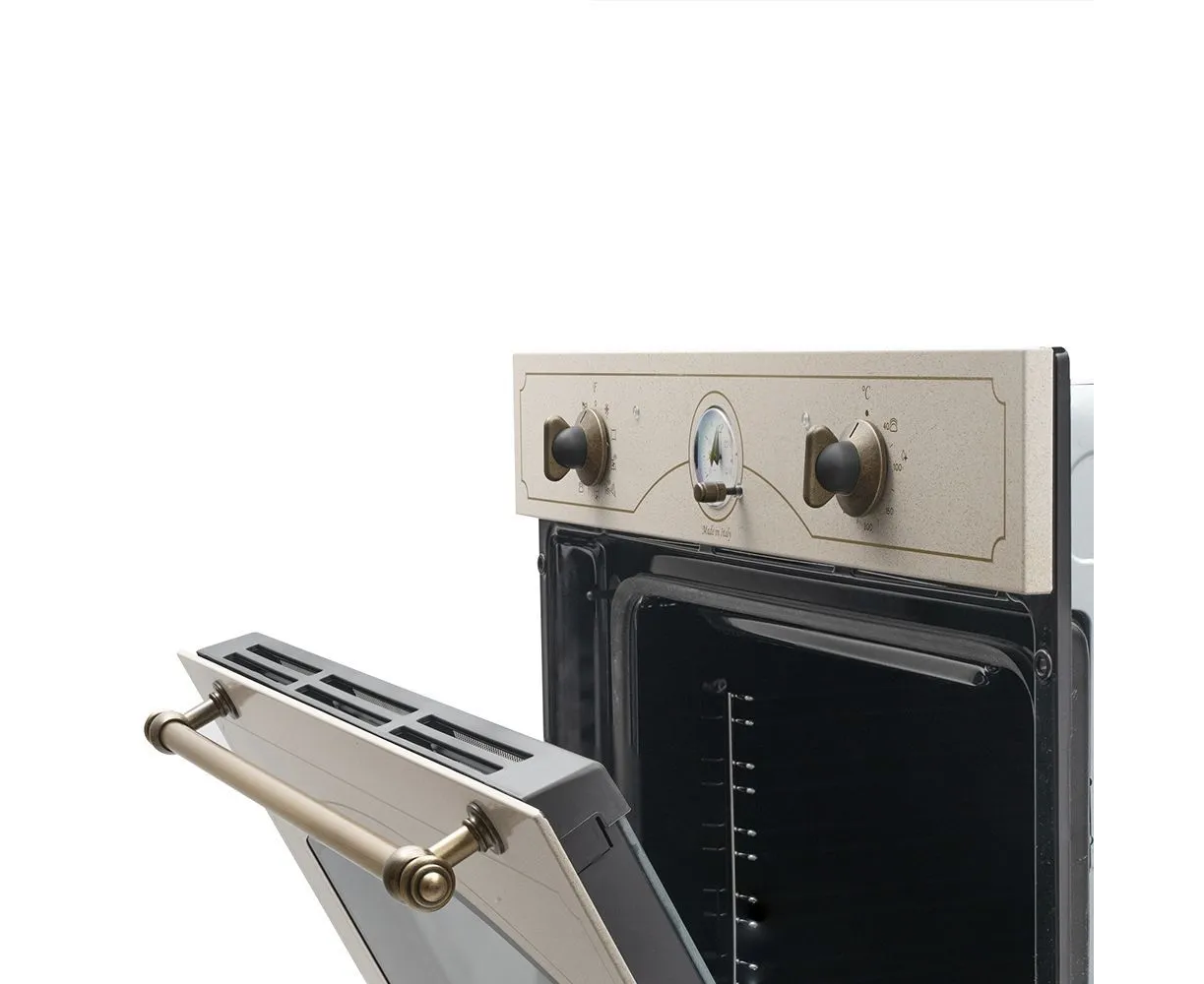 Особенности духовки, плиты: Быстрый нагрев, Вентилятор охлаждения, Встроенные часы, Дизайн Ретро, Электромеханический вертел, Хромированные направляющие, Защитное покрытие от отпечатков пальцев