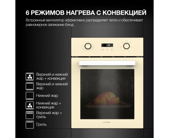 Духовой шкаф Hyundai HEO 45411 BE стекло бежевое