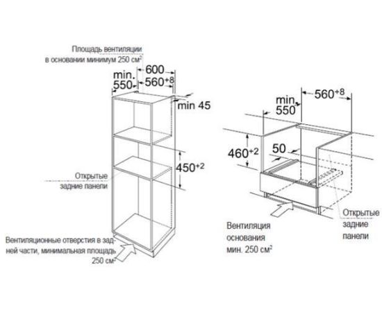 Размеры ниши для встраивания (ШхГхВ): 56 x 55 x 45 см