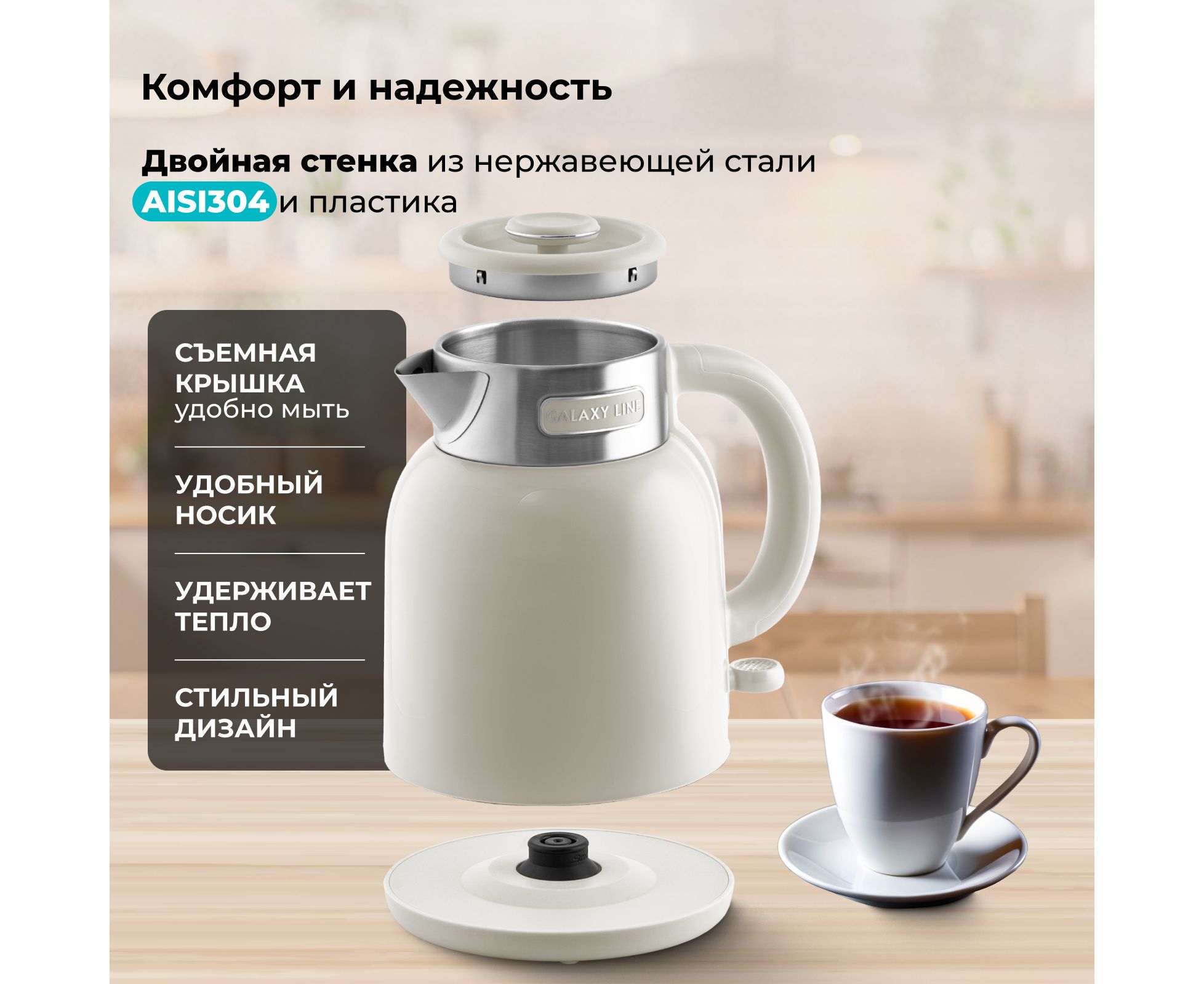 Электрический чайник с двойными стенками GALAXY LINE GL0363 прослужит вам долгие годы и украсит интерьер любой кухни.
