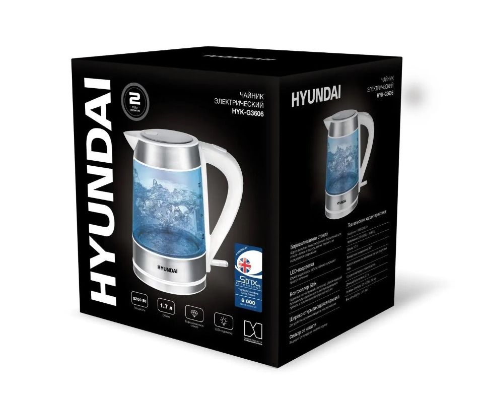 Электрочайник Hyundai HYK-G3606 белый/прозрачный