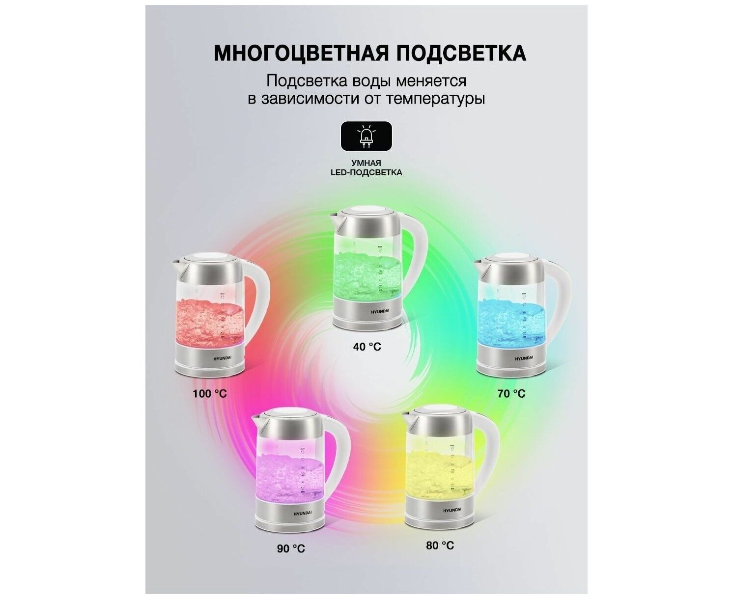 Оснащен LCD дисплеем для выбора температуры и её индикации. Имеет красивую цветовую подсветку воды которая меняется в зависимости от температуры. 5 температурных режимов на выбор, а так же функция поддержания температуры и дехлорирования.