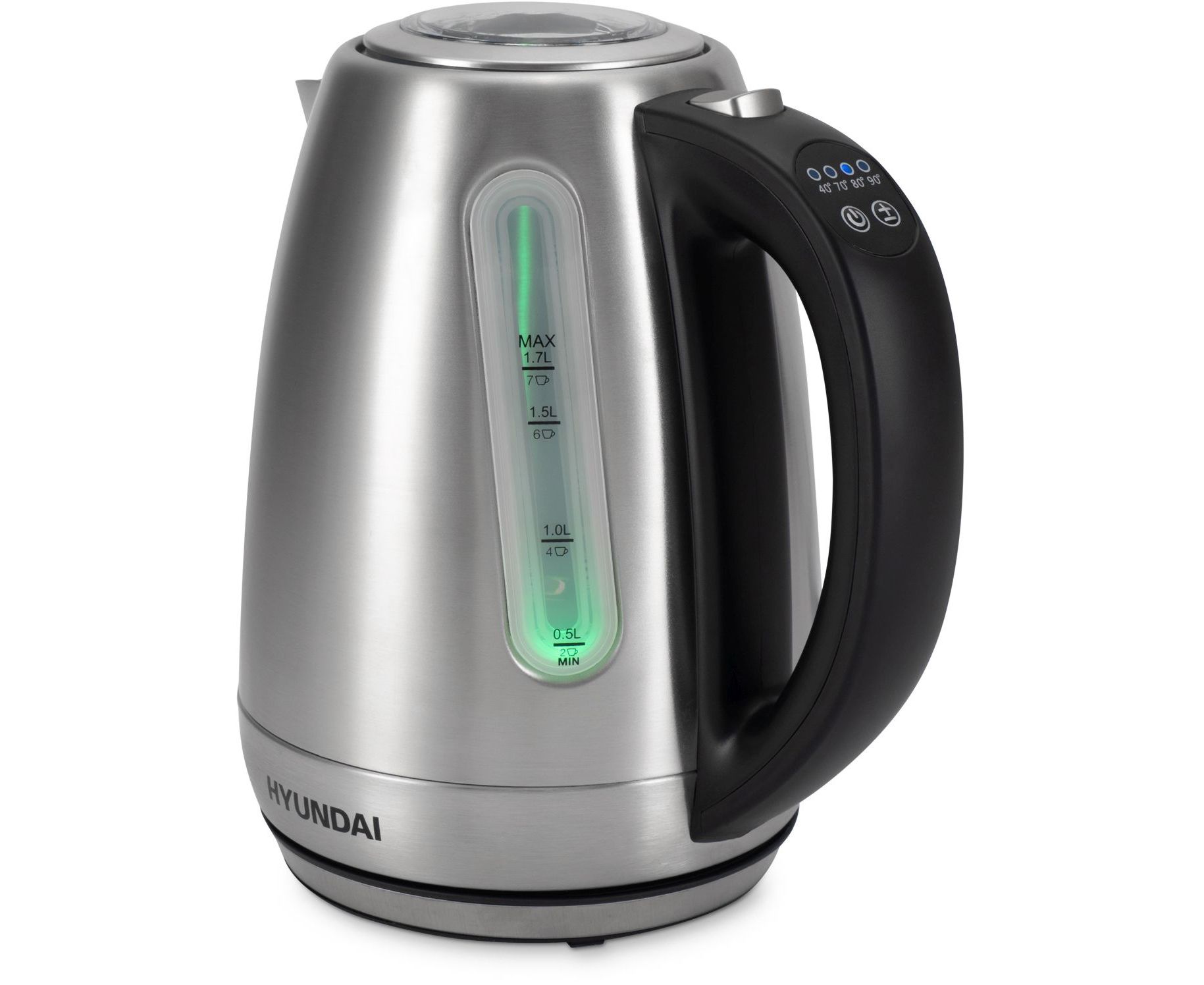 Стильный металлически чайник, с регулировкой температуры на ручке, красивой голубой подсветкой и не обычной формы шкалой уровня воды, фильтром от накипи и прозрачной крышкой , станет незаменимым помощником на вашей кухне.