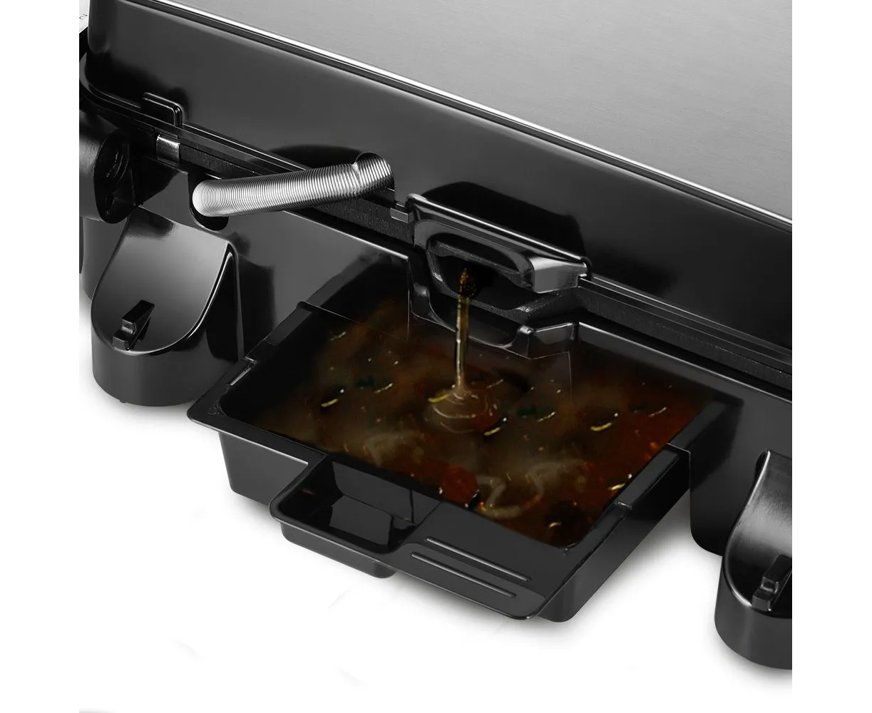 Данная модель электрогриля оснащена поддоном для слива жира и сока, которые выделя¬ются в процессе приготовления продуктов. Все лишнее стечёт в поддон, который можно будет снять и вымыть.