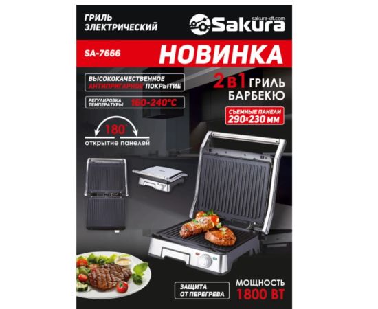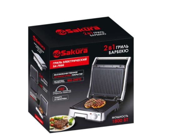 Электрогриль SAKURA SA-7666 серебристый/черный