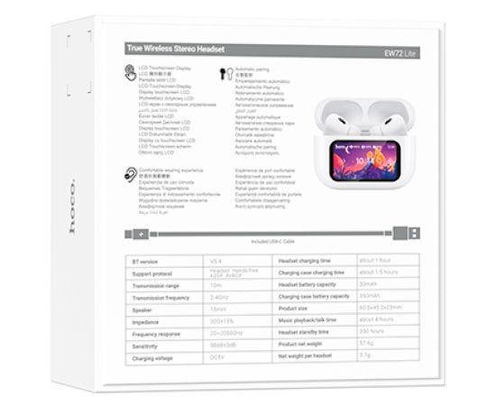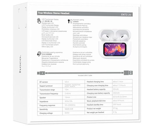 Беспроводные наушники Hoco EW72 lite – это современная разработка компании Hoco. Наушники обладают великолепным громким звуком с глубокими басами, сенсорный цветной экран. Время работы без подзарядки до 4 часов. В беспроводных наушниках Hoco EW72 lite установлен чип JL AC7003, обеспечивающий беспроводное соединение по стандарту Bluetooth 5.4. Hoco EW72 lite это наушники закрытого или вакуумного типа, это значит, что они полностью перекрывают ушной канал и частично заглушают внешние шумы. У наушников Hoco EW72 lite отличное качество звука, особенно оно понравится слушателям, которые любят мощные насыщенные басы. Это достигается благодаря 13-миллиметровому динамику. Кейс снабжен сенсорным экраном отображает текущий уровень заряда и точное время работы наушников и зарядного чехла. Наушники Hoco EW72 lite отлично работают с устройствами на операционных системах iOS, Андроид, Windows. Технологии Bluetooth становятся все доступнее, забудьте о проводах – беспроводная гарнитура позволит вам насладиться музыкой и беседой, и не тянуться при этом за телефоном, чтобы переключить трек или ответить на звонок. Наушники Hoco - лучший подарок для детей и для взрослых. Отличный подарок на новый год.