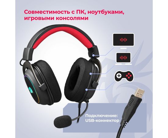 Гарнитура игровая REDRAGON Zeus X RGB,черн,7.1,USB 70550