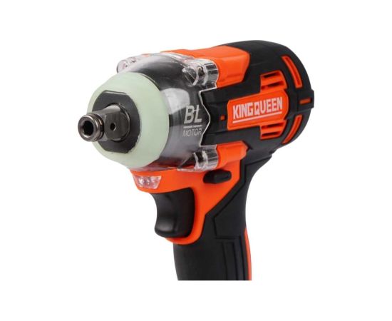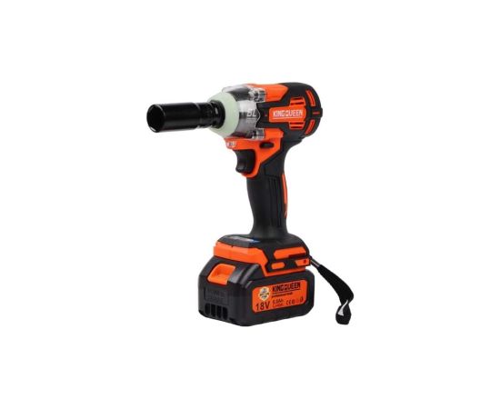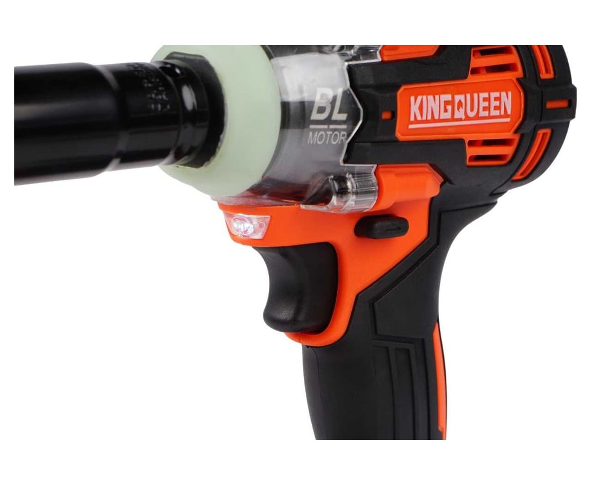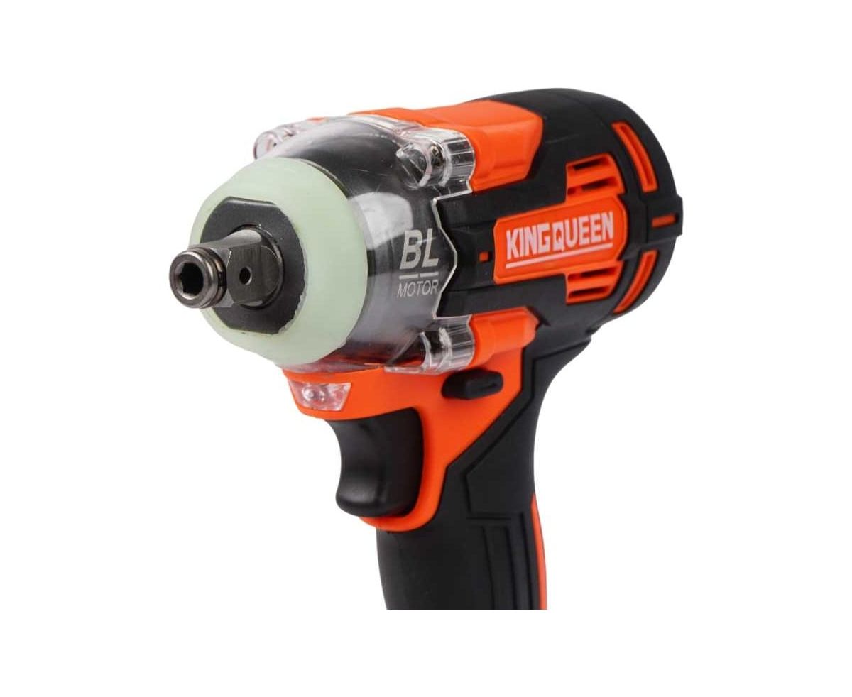Аккумуляторный гайковерт «KINGQUEEN» нужен для оперативного закручивания или откручивания гаек или болтов. Инструмент оснащен мощным бесщеточным двигателем с крутящим моментом 320 Нм, который разгоняет скорость вращения шпинделя до 2600 оборотов в минуту. Он оснащен кнопкой реверса для смены направления вращения, имеет 3 скорости переключаемые кнопкой, также плавную регулировку оборотов пусковой кнопкой и оснащен электрическим тормозом.