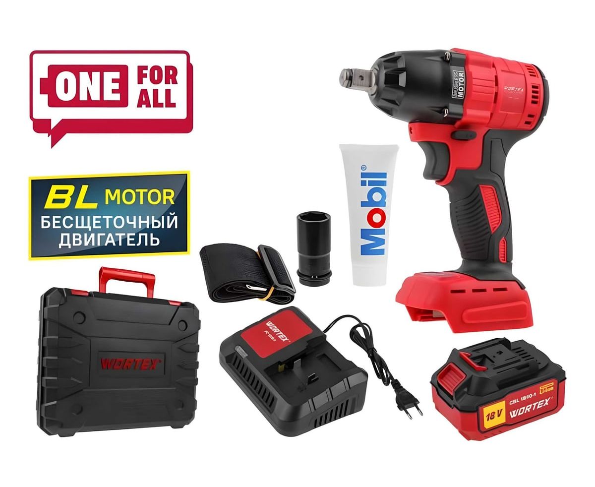 Гайковерт Wortex CWR 0318 (0329229) кейс, АКБ и ЗУ