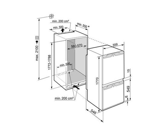 Габариты ниши Высота/Ширина/Глубина: 177,2 - 178,8 / 56 - 57 / 55,0 см