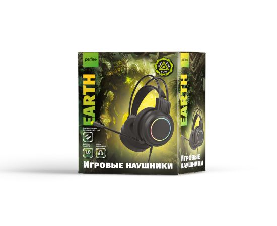 Игровая гарнитура Perfeo RGF EARTH/ 1,8 м, разъем 3,5 мм (4 pin) и USB (LED) / переходник / Черный