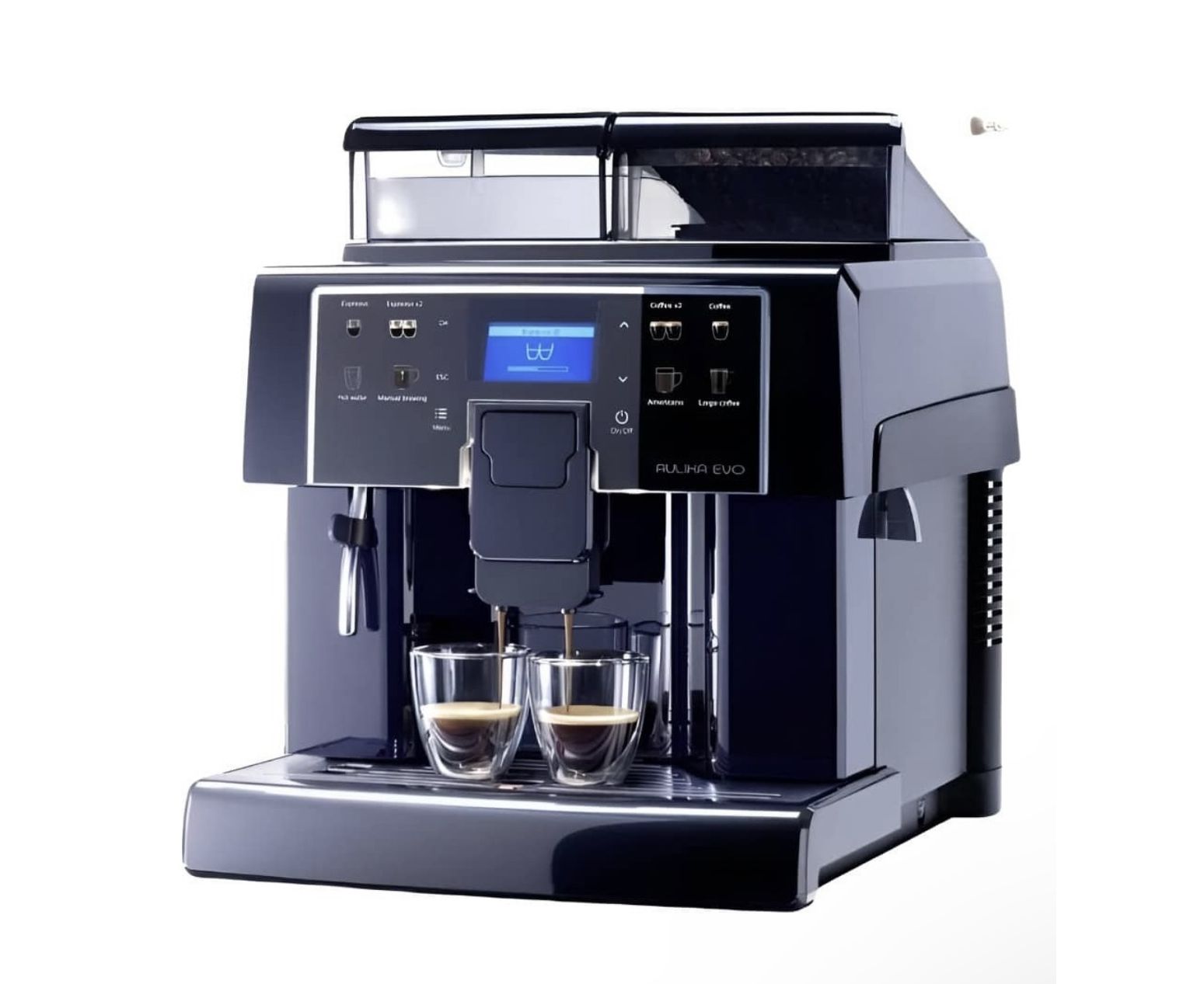 Автоматическая кофемашина Aulika Evo Black торговой марки Saeco является универсальным полупрофессиональным оборудованием, предназначенным для работы в условиях повышенной нагрузки в магазинах, клиниках, офисах, салонах, кафе и заведениях общепита. Аппарат способен выдавать до 130 порций каждый час. На сенсорном дисплее можно выбрать один из восьми кофейных напитков, отображенных на кнопках.